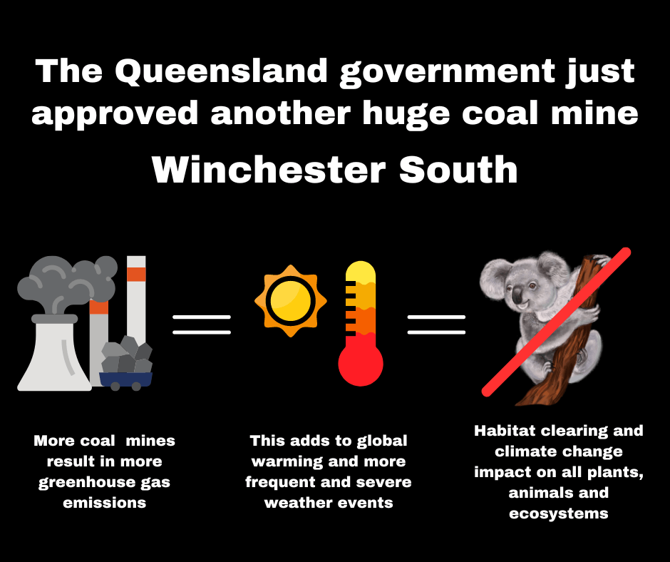 “The Winchester South coal mine is completely contradictory to Queensland’s carbon emissions reduction target and the Queensland Energy and Jobs Plan. It also poses unacceptable threats to ecosystems and Queenslander’s human rights.