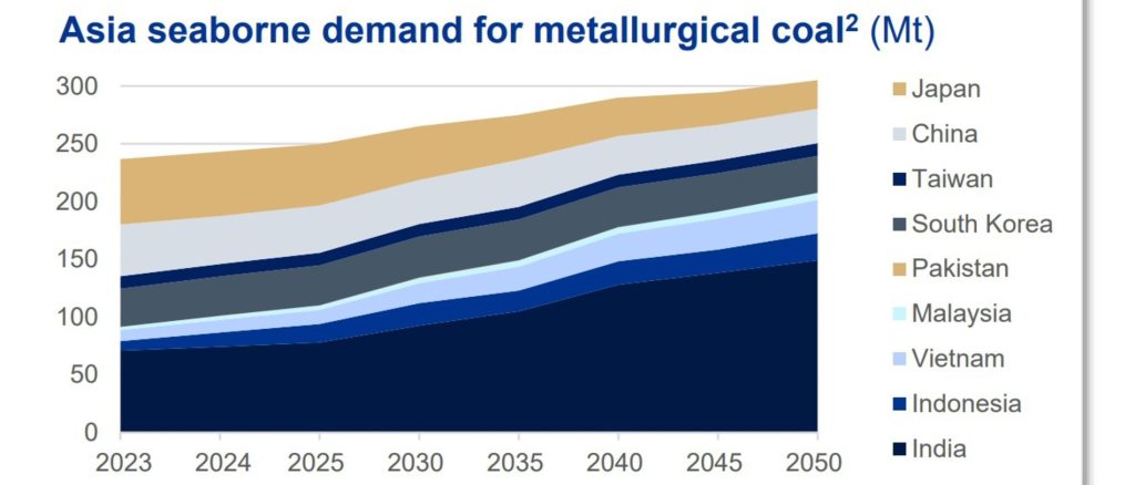 A study from Wood Mackenzie, commissioned for Whitehaven, showed Asia’s appetite for metallurgical coal would rise by about 29 per cent to 2050 with India’s demand to grow by about 110 per cent.