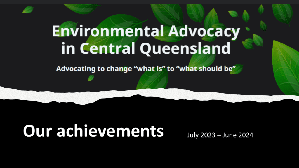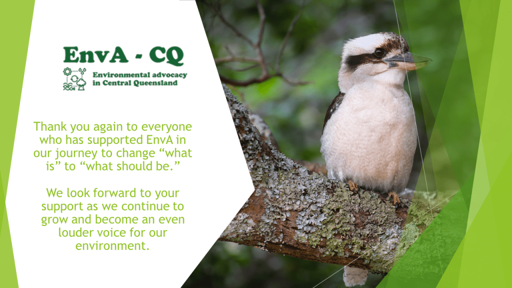 Our outgoing President presented his report. Tom focussed on acknowledging the incredible efforts of the staff and volunteers that have made EnvA what it is today – a vibrant, energetic, grassroots group who are really making a difference here in Central Queensland!