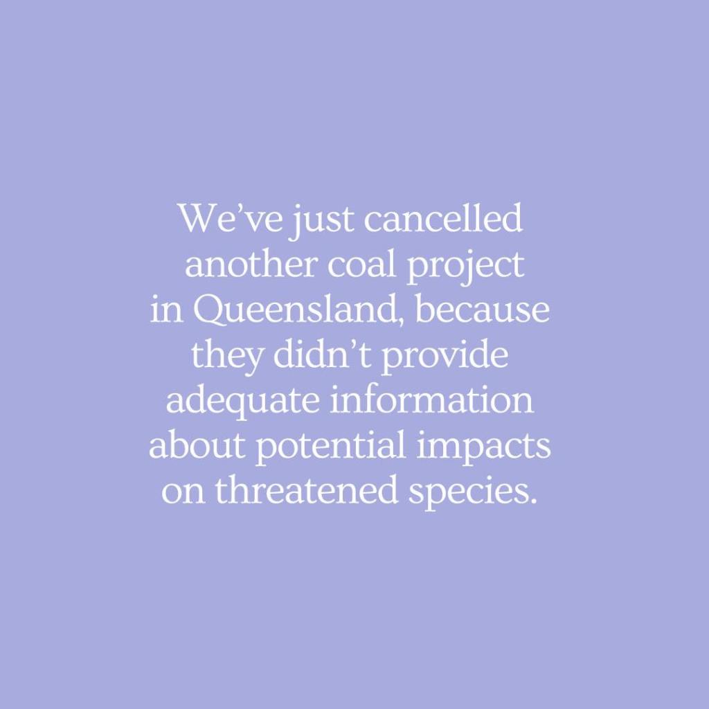 “Claiming to be cancelling a coal mine is a poor attempt at covering up the negative consequences of the eleven coal projects she has approved as Environment Minister.”
