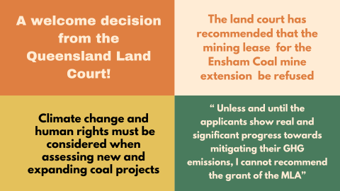 Local community groups have welcomed the Queensland Land Court’s recommendation that the State Government refuse the expansion of the Ensham Coal Mine due to its significant contribution to greenhouse gas (GHG) pollution.