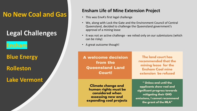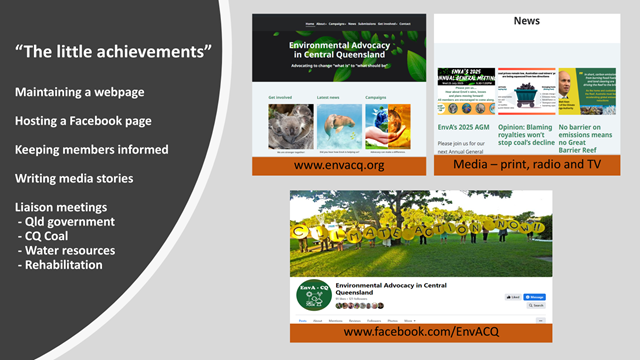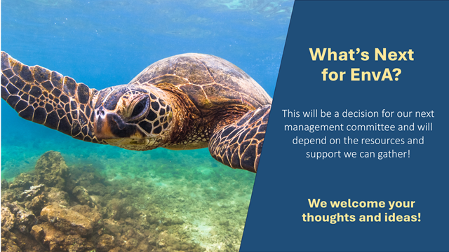 Coral then gave a wrap up of EnvA’s work and achievements over the last year: