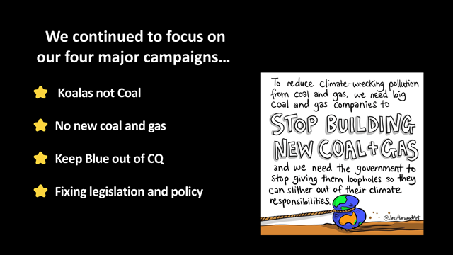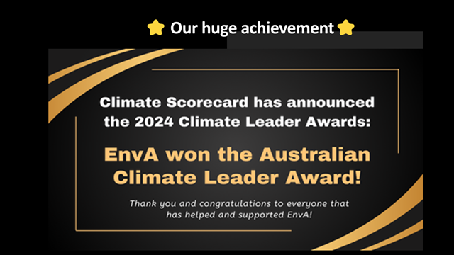 Our outgoing President presented his report. James focussed on acknowledging that EnvA established at a moment in time when Australian voters had climate change at the top of their concerns. He congratulated every person that has setpped up to guide EnvA and everyone who has supported EnvA over our three year journey.