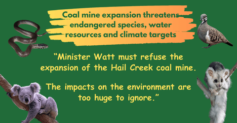 Environmental Advocacy in Central Queensland (EnvA) has called on the Federal Environment Minister to refuse approval of Glencore’s proposed Hail Creek Open Cut – Eastern Margin Extension, warning the project would cause unacceptable harm to endangered wildlife, water resources and the Great Barrier Reef, while worsening climate impacts.