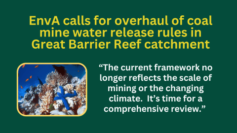 The Fitzroy Basin is the largest catchment flowing to the Great Barrier Reef, yet EnvA says large volumes of highly saline mine-affected water continue to be released during wet seasons, often simultaneously from multiple mines, with limited public transparency and minimal assessment of cumulative impacts.