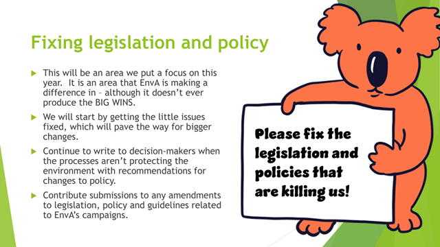 We don’t recieve government or fossil-fuel company funding, so we are not contrained in what we say and do. EnvA relies on like-minded people to keep us active as a voice for our community.